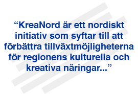 Inom ramen för KreaNord drivs ett antal aktiviteter och projekt som syftar till att möta behovet av ett gemensamt nordiskt utvecklings- och policyarbete inom området kreativa industrier.